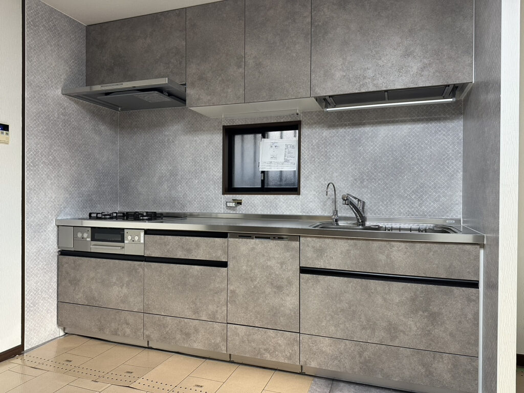 キッチン本体はもちろん、パネルを含めてすべてグレー調で統一されました。
